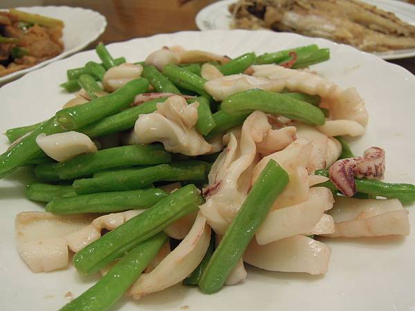 上次去吃鳥窩窩的四季豆炒花枝 老媽就學了起來 回家炒給我們吃!!! 真的好吃~ 我喜番!!