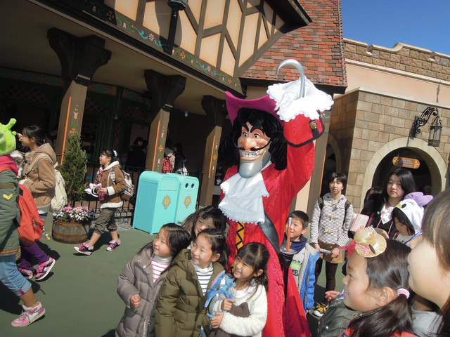 看到虎克船長囉!! 整個擠不進去跟他合照 就遠遠的照他一下