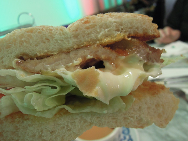 挺好吃的耶!!! 豬排還算挺厚的~ 加上我愛的美乃滋!!! 我喜歡