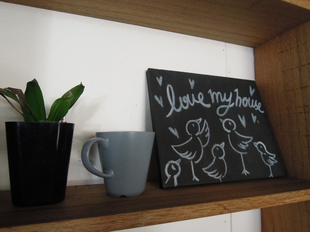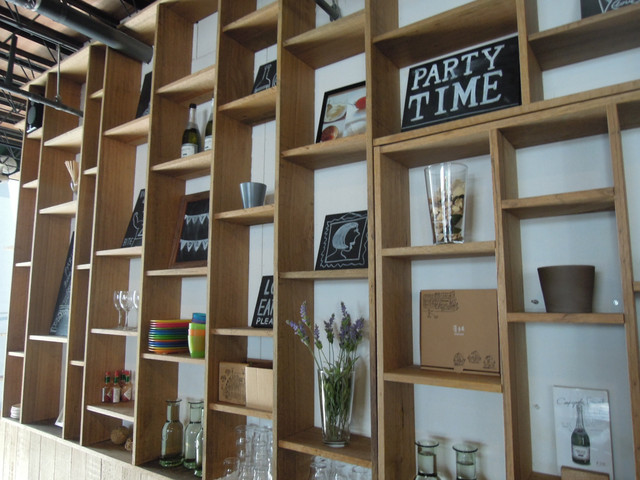一整面的木製格子 隨機擺上不同的東西 隨意啊!!