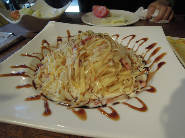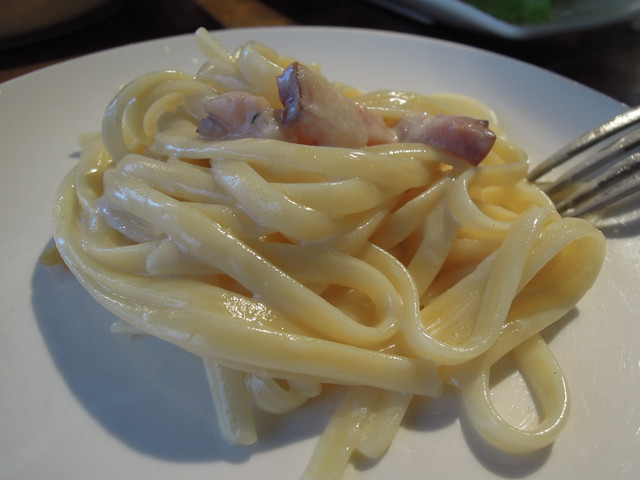這次吃推薦的巴薩酒醋乳酪培根細扁麵