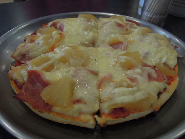 我們還點了一份義大利脆餅 (鳳梨火腿) 7吋才130元 真是便宜啊!!!