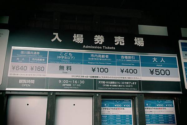 名古屋市營地鐵一日卷可以優惠100元 所以門票一人是400元日幣